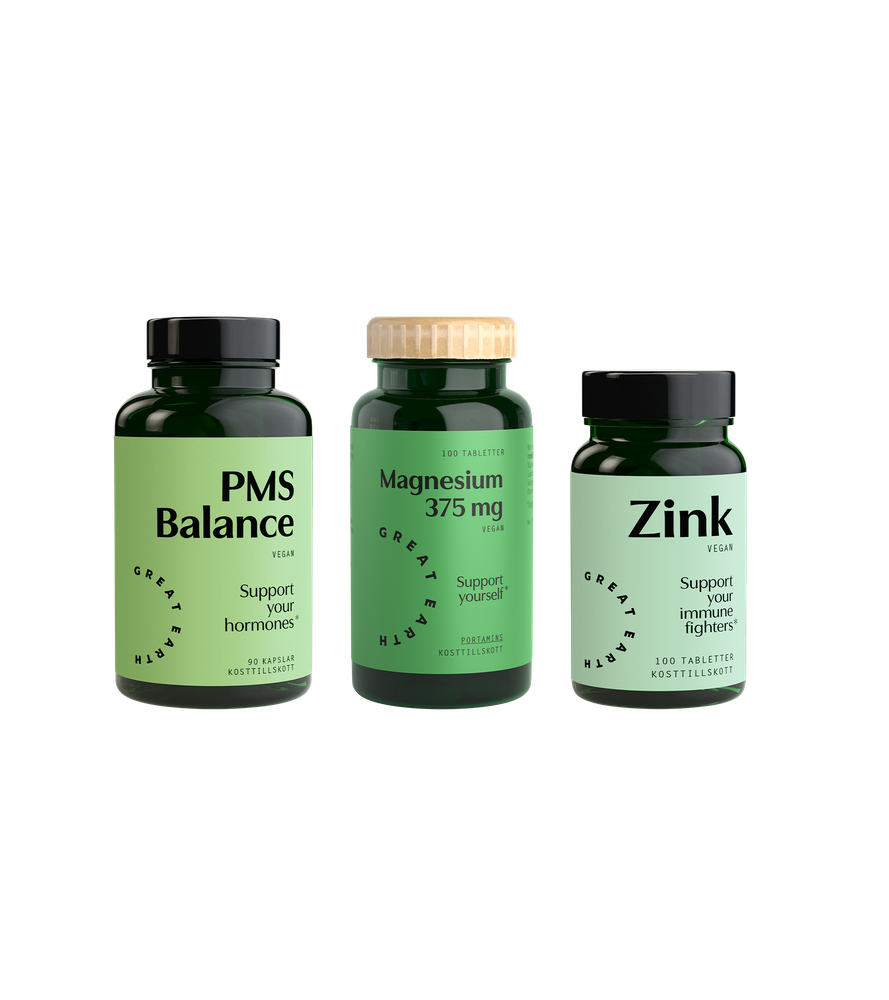 Smart bundle for your PMS. Although many women experience PMS with an unpleasant cocktail of anxiety, mood swings and muscle aches, many grit their teeth and fight their way through it each month — equipped with nothing but chocolate and patience. But help is available.We’ve put together a real power bundle for you who’ve decided to take charge of your PMS. Let’s go!